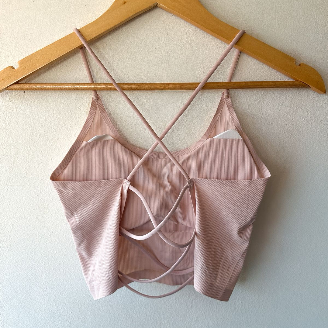 Hermoso peto deportivo sin costura, con tirantes en la espalda y almohadillas removibles.